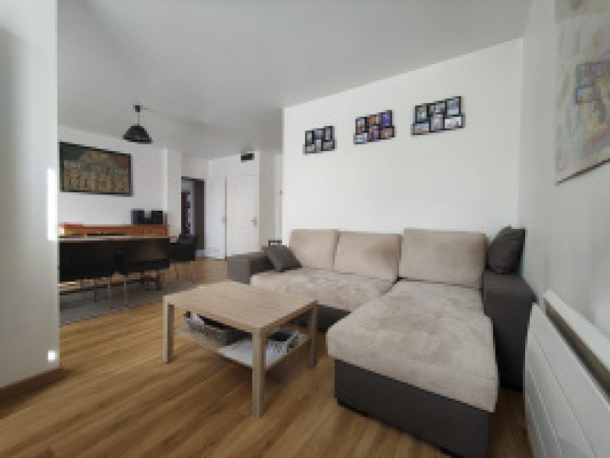 Très bel appartement F3 de 65 m², entièrement refait à neuf très bien situé au 4ème etage d' un immeuble avec ascenseur, double séjour très lumineux de 25 m² donnant sur un grand balcon de 8 m², deux belles chambres, cuisine équipée, cellier, salle de douche, wc, placards de rangements, cave et parkings privés à la résidence, le tout très bien situé dans une résidence gardiénée entourée par des jardins paysagés et arborés de toute beauté, avec vue au dessus de la ville dans un quartier calme, proche des écoles et de tous commerces, à 10 mn en bus du centre ville et de la gare. AFFAIRE RARE A SAISIR!!!